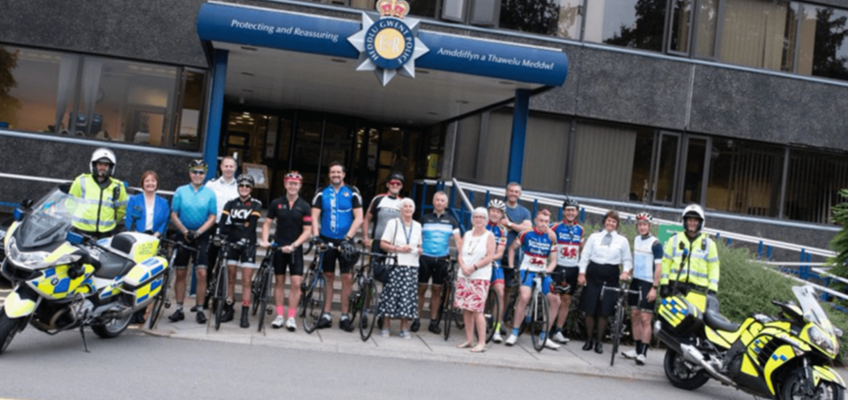 Ymunodd y Prif Gwnstabl dros dro Pam Kelly â'r beicwyr ar y llinell gychwyn, ynghyd â'r Dirprwy Gomisiynydd Heddlu a Throsedd, Eleri Thomas, a roddodd ganmoliaeth i'r rhai a oedd yn cymryd rhan a dymuno'r gorau iddyn nhw ar eu taith.